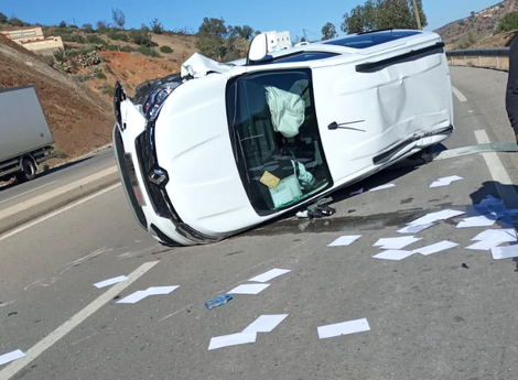 انقلاب سيارة في حادثة سير على الطريق السريع بجماعة النكور