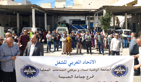 نظمت الجامعة الوطنية لعمال وموظفي الجماعات المحلية فرع الحسيمة المنضوية تحت لواء الاتحاد المغربي للشغل وقفة احتجاجية أمام مقر جماعة الحسيمة صباح اليوم الاثنين 27 مارس من السنة الجارية على خلفية الاهانة التي تعرض لها موظف بجماعة الحسيمة اثناء مزاولة عمله على يد عضوين بالمجلس و يتعلق الامر بوسيم لبحر النائب الاول للرئيس و هشام أمزيان الادريسي رئيس لجنة المرافق العامة.