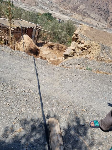 اعمدة وأسلاك كهربائية متساقطة في الطرقات وعلى المنازل بجماعة امرابطن (صور)
