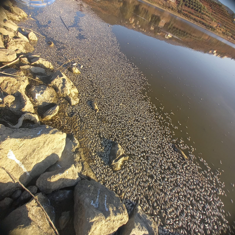 نفوق عشرات الالاف من الاسماك بسد الخطابي بالحسيمة (صور)