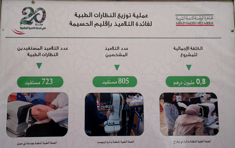 كما شهد الحفل توزيع 723 نظارة طبية لفائدة التلاميذ الذين يعانون من ضعف البصر بمختلف المؤسسات التعليمية بالإقليم، وذلك ضمن برامج دعم التمدرس ومحاربة الهدر المدرسي، بكلفة مالية بلغت 0,8 مليون درهم.