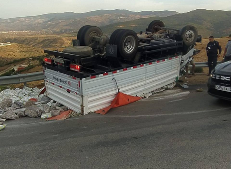 انقلاب شاحنة على الطريق الوطنية رقم 2 باقليم الحسيمة يخلف اصابات