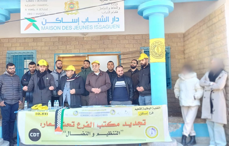 شهدت دار الشباب بمركز إساكن، يوم الأحد 23 نونبر 2025، انعقاد أشغال تجديد الفرع المحلي للنقابة الوطنية للتعليم المنضوية تحت لواء الكونفدرالية الديمقراطية للشغل (CDT)، وسط حضور وازن لنساء ورجال التعليم، وبإشراف ممثلين عن المكتبين الجهوي والإقليمي. ويأتي هذا اللقاء في سياق دينامية تنظيمية تعيشها النقابة على مستوى إقليم الحسيمة، خصوصاً بعد تزايد الانخراطات الجديدة في صفوفها.