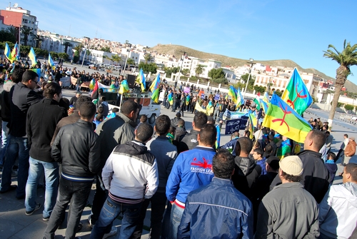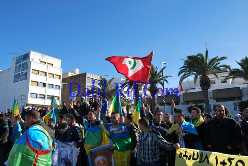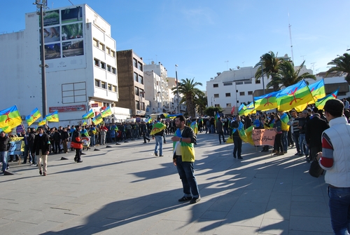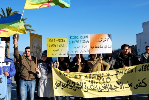 وامام هذا المنع حول المحتجون الذين توافدوا على مدينة الحسيمة من مختلف مناطق شمال المغرب مسيرتهم الى وقفة في الساحة الكبرى رفعوا من خلالها شعارات تطالب برد الاعتبار للغة و الثقافة الامازيغيتين و الاستجابة لمطالب سكان المناطق الامازيغية، اضافة الى مطالب سياسية و اجتماعية.