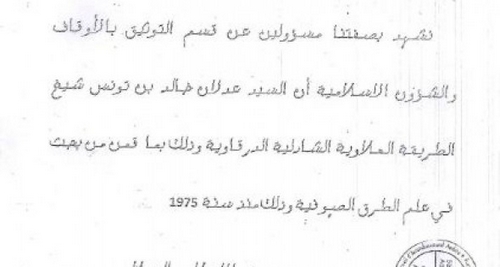 وكانت وزارة الأوقاف قد اكتشفت وثيقة مزورة سلمت خارج مصالحها من قبل شخص إدعى أنه ينتمي إلى مصلحة "التوثيق" بالوزارة، وسلّم وثيقة تشهد بأن المواطن الجزائري "خالد بن تونس" هو المسؤول عن الطريقة العلاوية بالمغرب، وتورد الوثيقة اعترافا من شخص يدعى "محمد فرشادو" بكون بن تونس شيخ الطريقة قبل أن تضيف "بصفتنا مسؤولين عن قسم التوثيق بالأوقاف والشؤون الإسلامية نشهد أن السيد عدلان خالد بن تونس شيخ الطريقة العلاوية الشادلية الدرقاوية، وذلك بما قمن من بحث في علم الطرق الصوفية منذ سنة 1975".