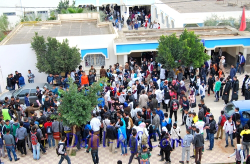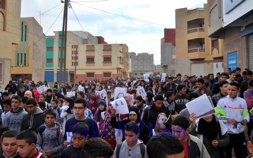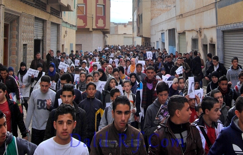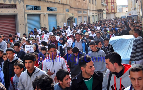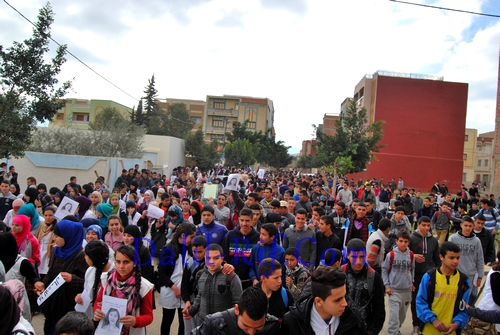 المسيرة الغاضبة التي انطلقت من ثانوية الخوارزمي شارك فيها المئات من تلميذات وتلاميذ المؤسسة المذكورة وجابت بعض الشوارع وسط مراقبة أمنية من الشرطة الحلية التي منعت المسيرة من التوجه للشارع الرئيسي بالمدينة.