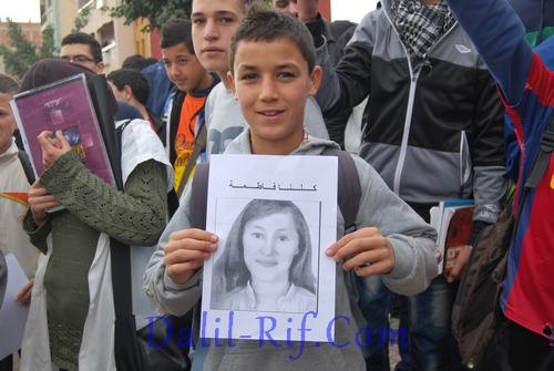 ورفعت التلميذات والتلاميذ الذين توجهوا بالمسيرة لمنزل عائلة المرحومة فاطمة أزهريو صور ولافتات تدين الاهمال الذي طال فاطمة كما طالبوا بفتح تحقيق جدي وتحديد المسؤوليات في وفاة فاطمة التي كانت مصابة بسرطان الدم.