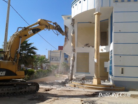 شرعت السلطات الاقليمية والجهات المعنية بعد زوال هذا اليوم الاربعاء 27 ماي في عملية هدم مقري بلدية وباشوية مدينة بني بوعياش، المتواجدان قبالة المركب التجاري الجديد وسط المدينة، وذلك بعد ترحيلهما الى مكان اخر الاسبوع المنصرم.
