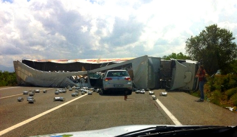 وتسبب الحادث الذي وقع على مستوى منطقة "كوريلا" نواحي العاصمة مدريد حوالي الساعة الرابعة بعد الزوال بالتوقيت المحلي، في إنقلاب الشاحنة وسط الطريق، قبل أن تصطدم بها سيارة أخرى، اصبيت على اثرها سائقتها بجروح طفيفة.