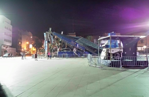 تسببت الرياح التي هبت ليلة أمس الثلاثاء 28 يوليوز الجاري، على مدينة الحسيمة، في إنهيار المنصة التي شُيّدت بالساحة الكبرى وسط المدينة، والتي تحضن سهرات "جولة" التي تنظمها شركة إتصلات المغرب كل سنة.