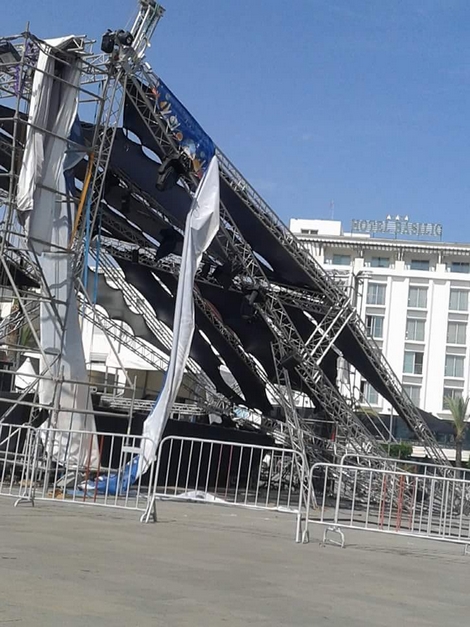 ولحسن الحظ ان المنصة إنهارت في وقت متأخر من ليلة أمس حيث لم تكن تحتضن ساعتها أي نشاط وكان محيطها خالياً من الجمهور، وهو الشيئ الذي ساهم في تجنب وقوع خسائر بشرية.