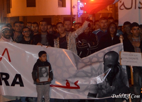 الخرجة الاحتجاجية لليوم تم تجسيدها في المكان الذي قُتل فيه محسن فكري، أمام مقر المحكمة الابتدائية للحسيمة، حيث احتشد المئات من المتظاهرين من الشباب والنساء والأطفال، في وقفة دعا إليها أمس الخميس نشطاء الحراك الاحتجاجي بالحسيمة.