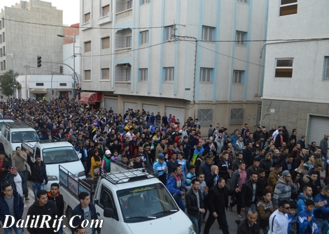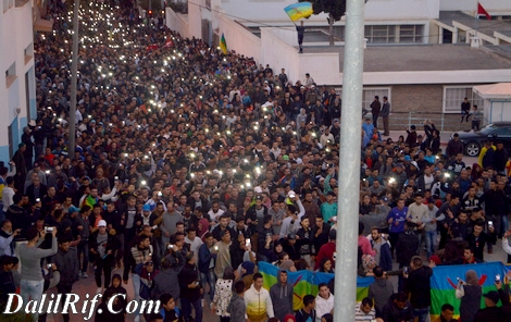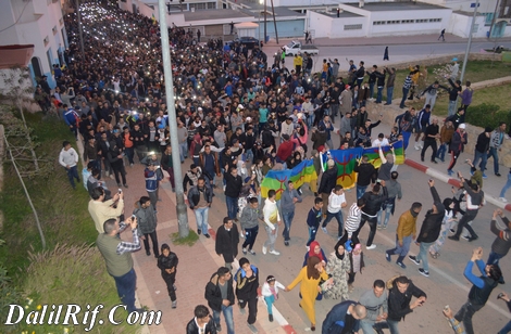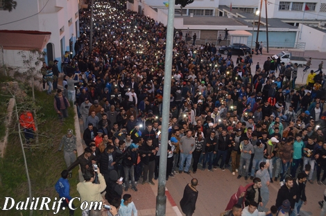 خرج مساء اليوم الأحد 05 مارس الجاري، الآلاف من المحتجين في مسيرة حاشدة جابت عدد من شوارع مدينة الحسيمة، في إطار الخرجات الاحتجاجية للحراك الشعبي الذي تشهده المنطقة منذ مقتل بائع السمك محسن فكري.