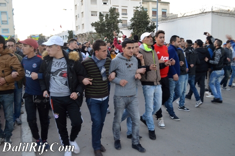 المسيرة التي لم يُعلن عنها مُسبقاً انطلقت من أمام مقر المحكمة الابتدائية بالحسيمة، بالتزامن مع مثول المعتقلين على خلفية أحداث يوم الجمعة الماضي عقب مباراة فريق شباب الريف الحسيمي والوداد البيضاوي، حيث احتشد العشرات من عائلات المعتقلين الى جانب نشطاء متضامنين أمام مقر المحكمة، قبل ان تنطلق من هناك المسيرة الاحتجاجية.