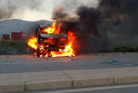 اشتداد المواجهات ببني بوعياش وامزورن واحراق المزيد من سيارات الشرطة (فيديو وصور)
