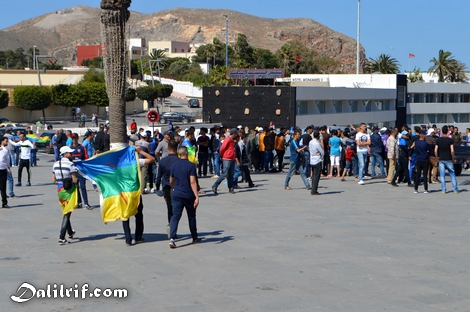 وفي هذه الآونة بدأت وفود عديدة من المحتجين تتقاطر على مركز الحسيمة من مختلف المناط المجاورة، حيث بدأ المحتجون يتجمعون في الساحة الكبرى وسط المدينة على بعد ساعتين من انطلاق التظاهرة.