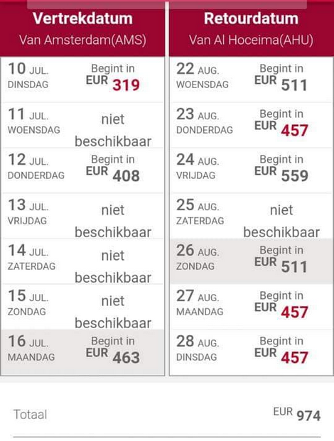 اود الاشارة فقط ان 5000 درهم هي قيمة رحلة العودة فقط وليس ذهاب واياب التي تصل الى 970 اذن اسراي انا مونة من 5 افراد ستثل كلفة الرحلة الى 4800 اورو