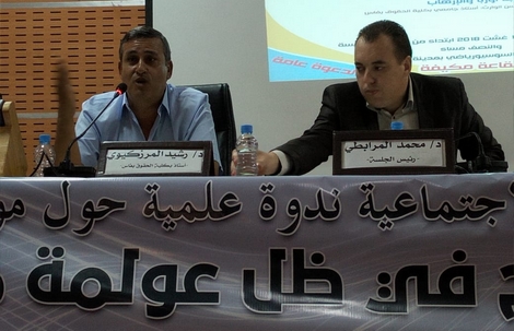 بعد إشادته بأهمية مثل هذه اللقاءات العلمية، افتتح المداخلات الدكتور رشيد المرزكيوي، أستاذ بكلية الحقوق بفاس. بعرض أكاديمي غني بعنوان : المهاجرون الأفارقة بالمغرب وإشكالية الاندماج"، حيث تحدث عن مجموعة من الأسباب التي تعرقل اندماج هؤلاء المهاجرين في المجتمع المغربي ومنها الذاتية مرتبطة بالمهاجرين الوافدين كالاختلاف الديني، العرقي واختلاف اللغة وكذا اختلاف نسيج المهاجرين الوافدين على بلادنا. كما ذكر مجموعة من الأسباب مرتبطة بالمجتمع المغربي، الذي ينقسم إلى اتجاه يؤيد تواجد هؤلاء المهاجرين بالمغرب ويدعو إلى دعمهم ومساعدتهم باعتباره واجب علينا كمسلمين. في حين هناك اتجاه آخر يرفض اندماجهم داخل نسيج المجتمع المغربي. وقدم الأستاذ بعض الحلول لتجاوز هذه الوضعية من قبيل تسوية الوضعية القانونية للمهاجرين الأفارقة بالمغرب، إدماجهم اجتماعيا واقتصاديا وثقافيا لكي يحسوا بالاستقرار في أرض غير أرضهم، تكثيف التعاون بين المغرب وبين دول الاتحاد الأوروبي وبينه وبين المنظمات الدولية. كما شدد في آخر مداخلته على ضرورة قيام المغرب في إطار شراكة دولية بمحاربة جرائم الاتجار بالبشر.