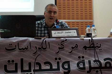 من جانبه قارب الدكتور محمد السعدي أستاذ جامعي بكلية الحقوق بوجدة. في مداخلته المعنونة ب " شباب الجيل الثالث للهجرة ببلجيكا: هويات تائهة ومتصدعة دراسة حالة حي برغراوت بانفرس". موضوع الهجرة من الجانب الاجتماعي، حيث قدم مجموعة من المعطيات والاستنتاجات المبنية على دراسة ميدانية أعدها الأستاذ حول هذا الموضوع، إذ توصل من خلالها إلى أن نسبة مهمة من شباب الجيل الثالث من المهاجرين المغاربة الذين يقطنون حي بورغراوت يعيشون فشلا في حياتهم الاجتماعية، ويعانون من صعوبة الاندماج، كما أنهم يتخبطون بين الانحراف الأخلاقي و التطرف الديني. وقال إن وضعيتهم هذه ترجع إلى الهوية، حيث إنهم لا يمتلكون تماسكا هوياتيا، أي ليست لديهم هوية مستقرة بالإضافة إلى أنهم يشعرون بالإقصاء والتهميش من مجتمعهم وأسرهم.