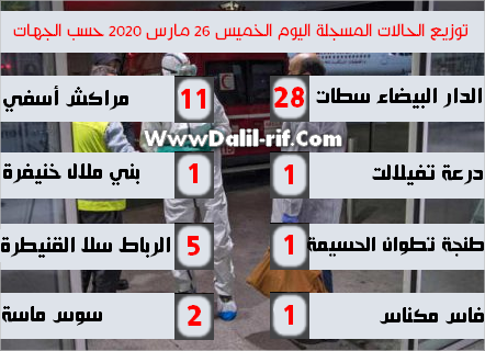 وقد توزعت الحالات الجديدة المسجلة اليوم على ثماني جهات وفق الأرقام التالية: