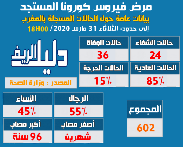 وفيما يلي بيانات عامة حول الحالات المسجلة بالمغرب إلى حدود اليوم: