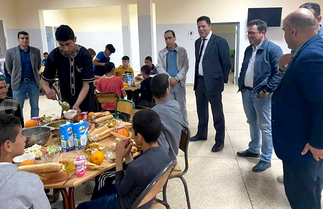 المدير الاقليمي بالحسيمة يتفقد خدمات المطعمة بالقسم الداخلي ويشارك التلاميذ وجبة الافطار