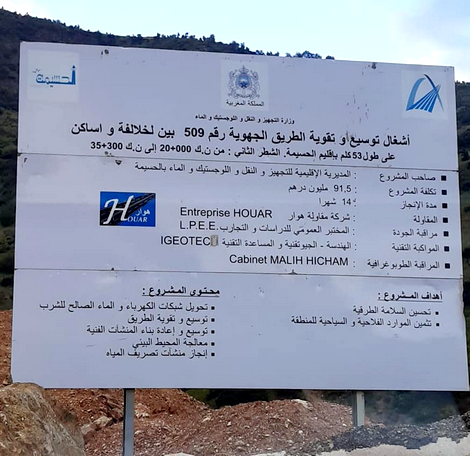 وللإشارة فان مشروع تهيئة هذه الطريق يتم انجازه في اطار برنامج التنمية المجالية لإقليم الحسيمة منارة المتوسط، الذي يفترض ان تنتهي الأشغال بجميع مشاريعه قبل سنة.