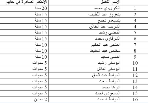 و إليكم لائحة معتقلي ثاماسينت و الأحكام القاسية الصادرة في حقهم: