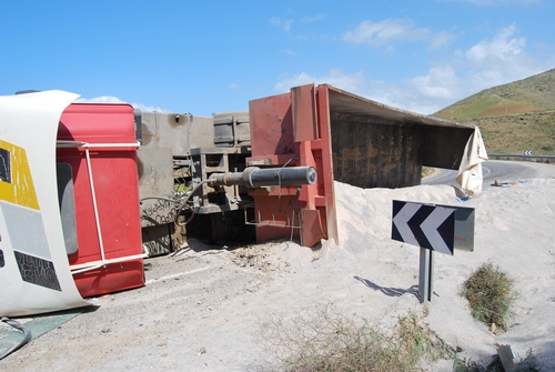 اصابة خطيرة في انقلاب شاحنة على الطريق الساحلية الناظور الحسيمة