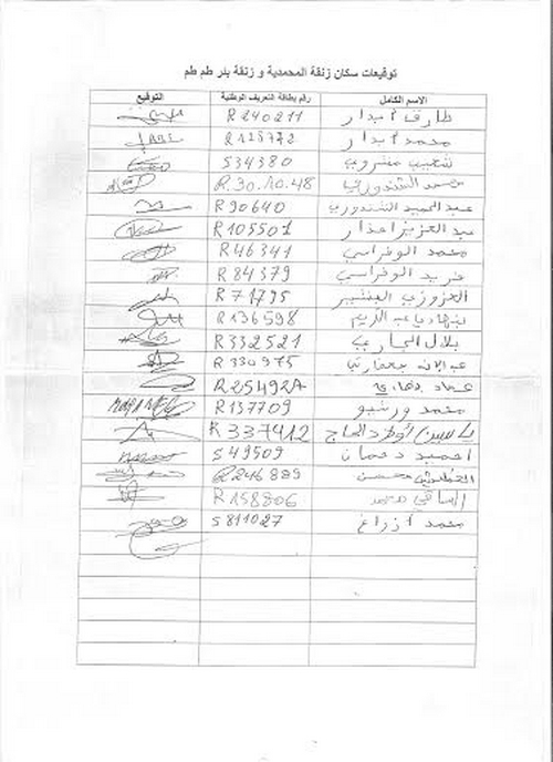 وأوضح عدد من سكان زنقتي المحمدية وبئر طمطم بنفس الحي انهم قاموا كثر من مرة بتقديم طلب مصحوب بعريضة توقيعات الى رئيسة المجلس البلدي من اجل اصلاح وترميم هذه الأزقة إلا انه لم يتم الاستجابة لطلبهم إلى حدود ألان.