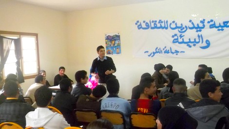 في إطار أنشطتها الثقافية والبيئية التي تنظمها. قامت جمعية ثذرين للثقافة والبيئة عشية أمس الجمعة 21/02/2014، بتنظيم نشاط ثقافي موازي لفائدة تلاميذ(ة) مسلك الثالثة إعدادي، بإعدادية امحمد الطرهوشي، بدوار امنود جماعة النكور إقليم الحسيمة. وكان هذا النشاط عبارة عن مسابقة ثقافية خللتها بعض المقاطع الفكاهية والفنية. وكان هناك تدخل من الجمهور ايضا في هذا النشاط بنغمات إنشادية وقصائد شعرية متميزة. وقد شارك في المسابقة ثلاث فرق كل فريق يمثل قسما معينا. وهي فريق "التحدي" وفريق "التسامح" وفريق "النجاح". وقد آلت المرتبة الأولى لفريق "النجاح" فيما عادت المرتبة الثانية لفريق "التحدي" متفوقا بنقطة واحدة فقط على فريق "التسامح" الذي حل أخيرا. كما شهدت الأمسية أيضا فقرات توجيهية للتحسيس بأهمية الموروث الثقافي وكذا الحفاظ على المجال البيئي. واختتمت الأمسية بتلاوات خاشعة من الذكر الحكيم.