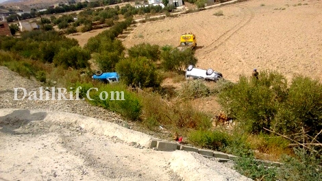انقلاب سيارتين قرب المدخل الشمالي لمدينة امزورن