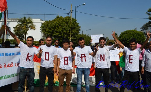 نظمت مجموعة من الفعاليات والجمعيات الامازيغية هذا اليوم الاحد 26 اكتوبر وقفة احتجاجية أمام سفارة تركيا بالرباط وذلك للتنديد بما أسمته "مجازر الابادة الجماعية وجرائم التقتيل التي ترتكبها ميلشيات "داعش'' في حق الشعب الكردي في مدينة ''كوباني'' وفي مناطق أخرى من أرض كردستان".