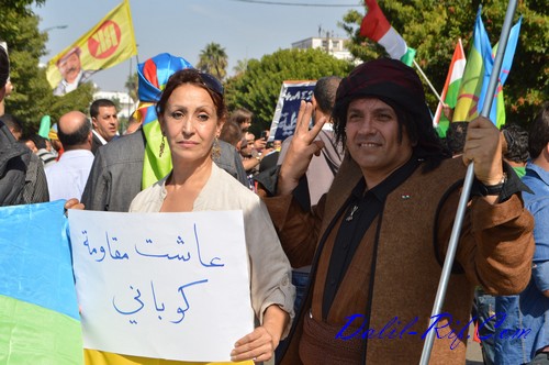 ورفع المشاركون في الوقفة الاحتجاجية التي شهدت أيضا بعض الأكراد شعارات تتهم تركيا بدعم "داعش" في ارهابها ضد الاكراد وعدم والتحرك لوضع حد لما يقترفه التنظيم الاسلامي من مجازر في حق الاكراد في منطقة "كوباني". واوضح احد المشاركين في الوقفة التضامنية ان "التقتيل المتحدث عنه يقع أمام أنظار العالم وبمباركة من الأنظمة الاسلاموية والقومية، والقوى الامبريالية العالمية دون تسجيل تحركات لوقف ذلك".
